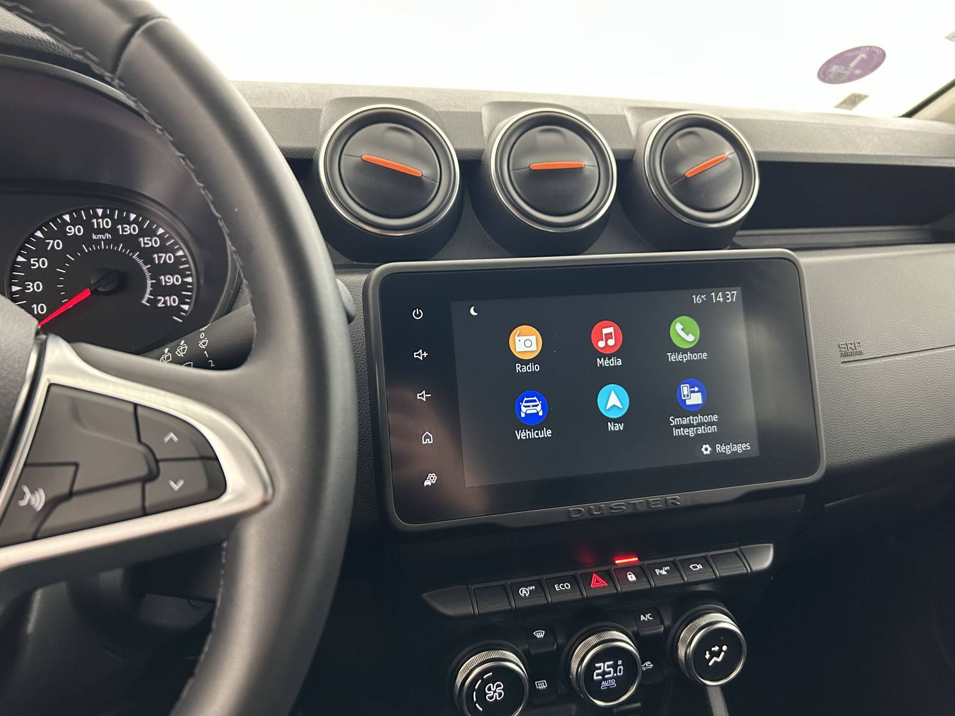 LE COFFRE A L AVANT ENTRE LES 2 SIEGES QUI FAIT ACOUDOIR GENE UN PEU POUR ATTACHER LA CEINTURE DU CONDUCTEUR PAR A PORT A NOTRE ANCIENNE DUSTER .